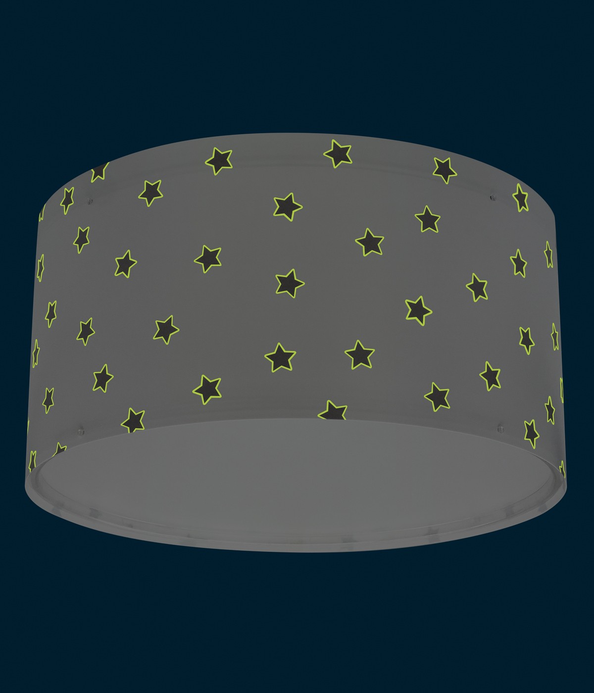 Kinder-Deckenleuchte Star Light Weiß mit Sternen, die im Dunkeln leuchten. Sie enthält fluoreszierende Tinte, die im Dunkeln leuchtet. Sie muss nur 5–10 Minuten eingeschaltet sein, um aufgeladen zu werden… Dann ausschalten und das magische Leuchten genießen! Mit blendfreiem Diffusor für sanftes und sicheres Licht im Kinderzimmer. 100 % montiert.