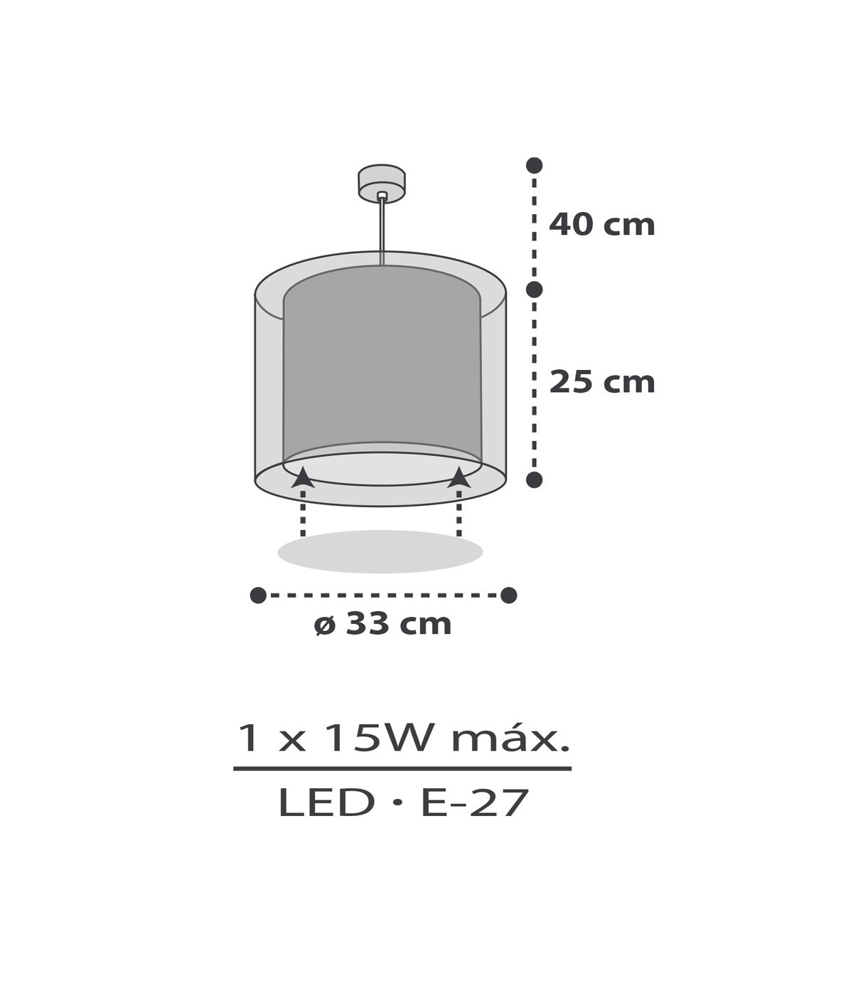 Transparent hanging lamp double shade, height adjustable and with a removable bottom light diffuser .