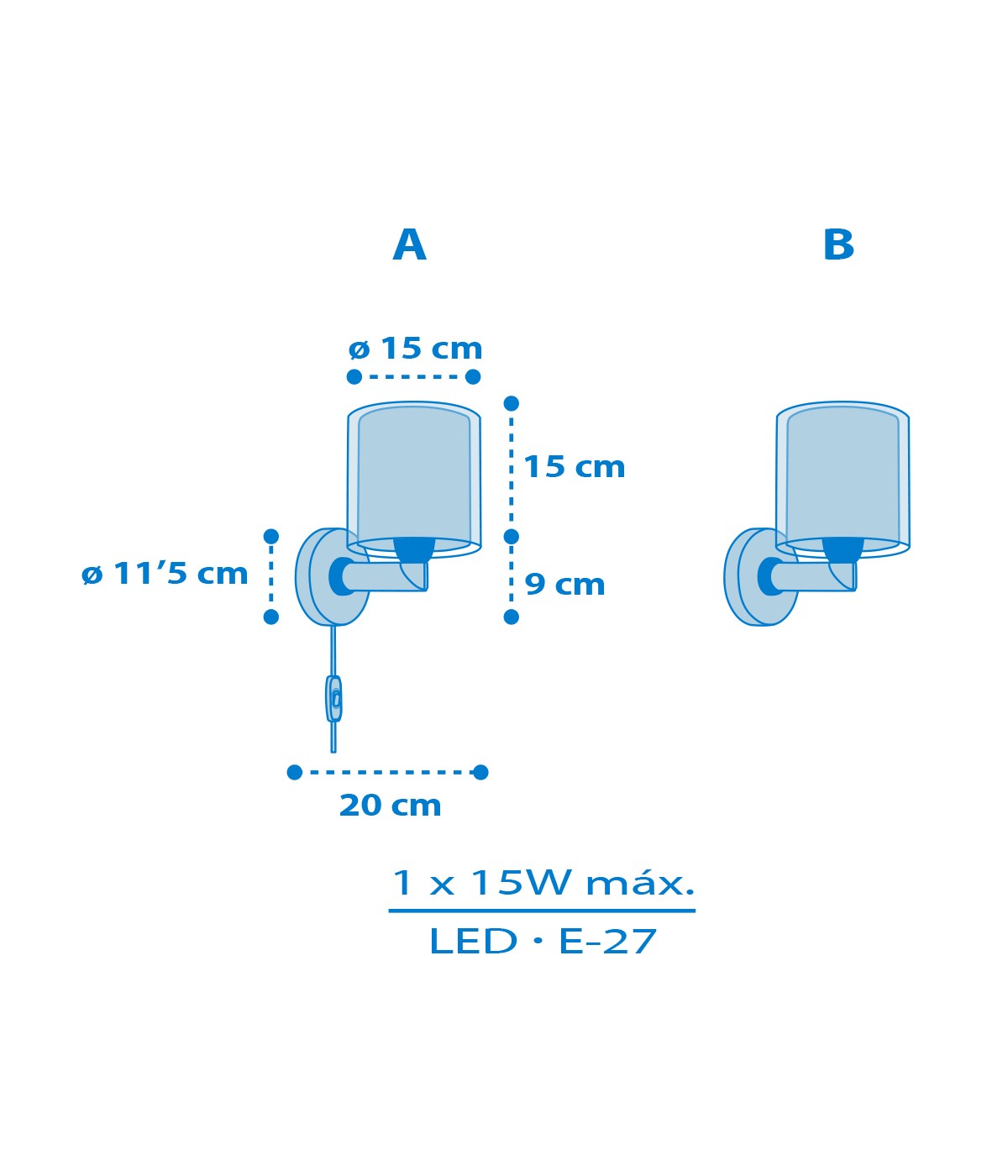 Kids World children's wall lamp. Can be installed directly on the wall or using the cable with switch, according to your needs.