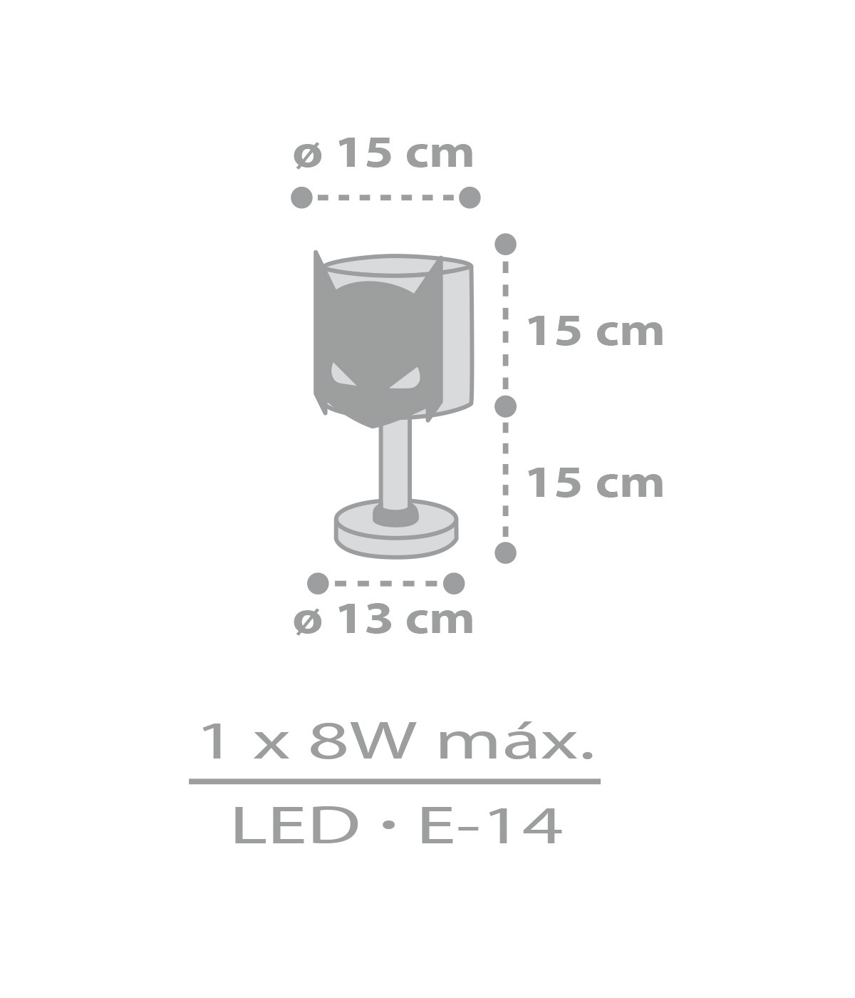 Lámpara de mesa infantil Dark Hero. Ilumina la valentía y la imaginación, con este superhéroe y convierte cada noche en una aventura épica. Fabricada con doble pantalla transparente de polipropileno. Brilla en la oscuridad!