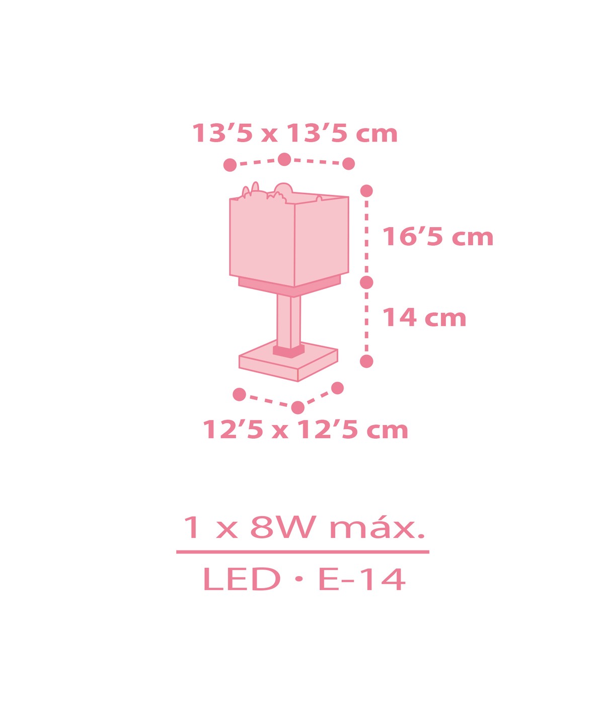 La lámpara de mesita de noche infantil Baby Jungle es una de las novedades Dalber. En ella encontrarás unos simpáticos leones, tigres, ositos y conejitos en su doble pantalla. Esta es la versión en color rosa, perfecta para dar color a la mesita de noche de las niñas. La lámpara infantil de mesita Baby Jungle esta fabricada en polipropileno transparente y tiene efecto de fluorescencia: el contorno de las figuras brillará levemente en la oscuridad durante unos minutos cuando los peques apaguen la luz. ¡A ellos les encantará!