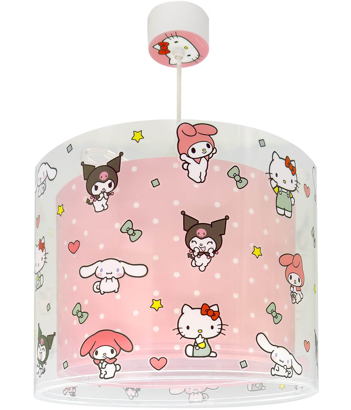 ¡La pandilla de Hello Kitty & Friends, Kuromi, My Melody y Cinnamoroll están aquí para iluminar y alegrar cada rincón de la habitación de los más pequeños! Esta adorable lámpara de techo, con los personajes más queridos de la serie, proporciona una luz suave y cálida que hace que el espacio sea aún más especial. Ideal para crear un ambiente alegre y lleno de fantasía, la lámpara es perfecta para acompañar el descanso o el juego. Aporta un toque único y divertido a la habitación de tu niño o niña, ¡y acompáñales con los mejores amigos de Sanrio en cada momento!