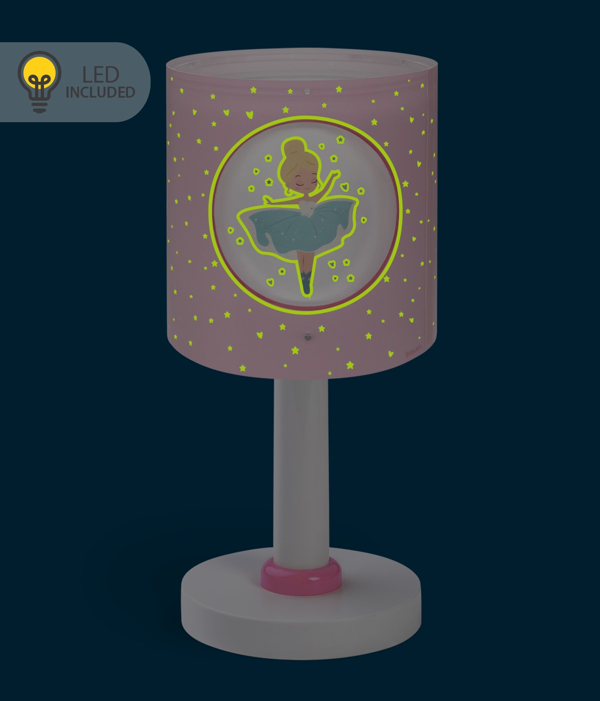 Lampe de chevet pour enfant Princess Dance. Contient de l'encre fluorescente qui brille dans l'obscurité ; il suffit de l'allumer pendant 5 à 10 minutes pour qu'elle se recharge… puis éteignez-la et profitez de sa lueur magique !