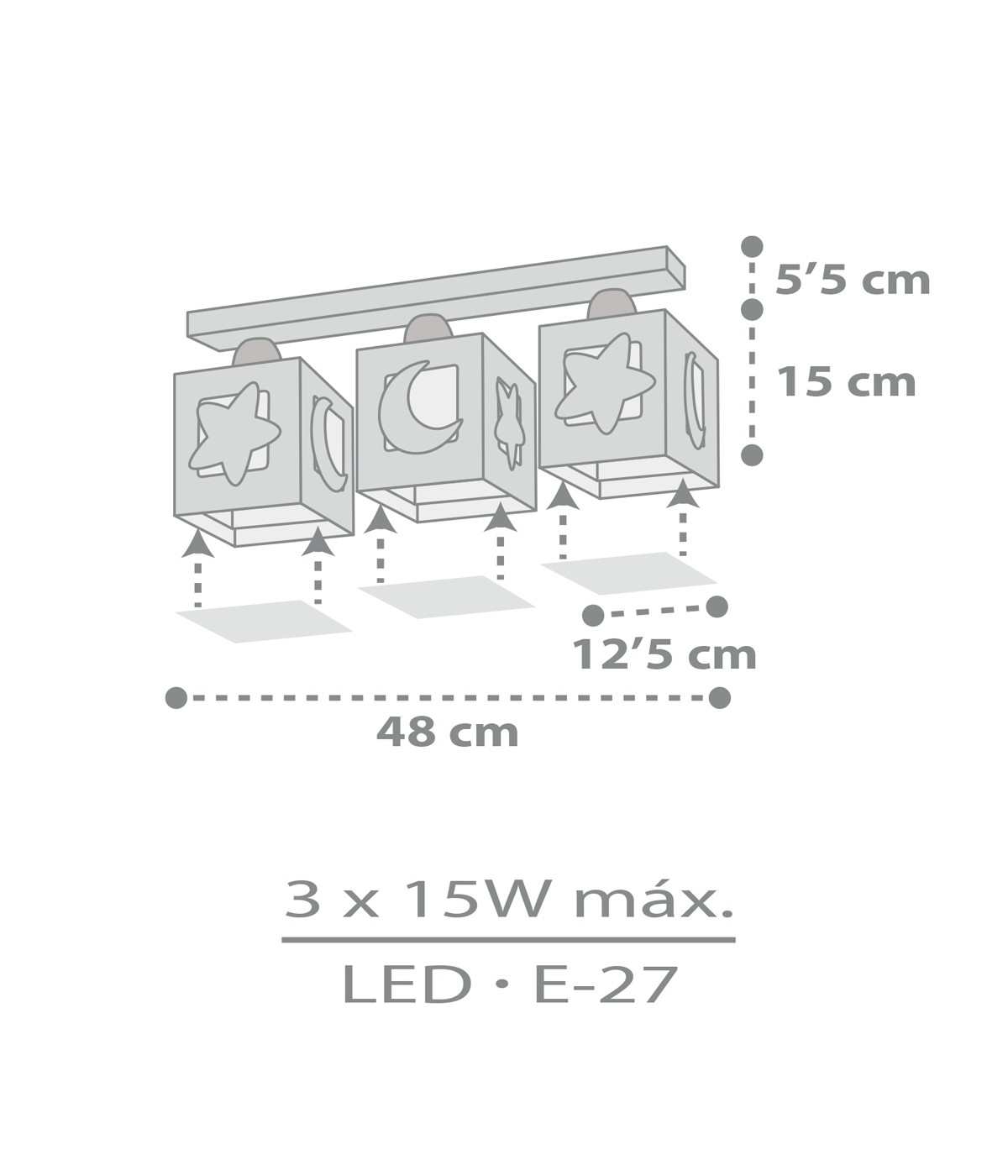 Le plafonnier pour chambre de garçon Moonlight gris est parfait pour éclairer la chambre des enfants grâce à ses trois lumières. Il s'installe directement au plafond, ce qui facilitera une répartition homogène de la lumière dans toute la pièce, en évitant les zones ombragées ou mal éclairées. Avec son design de lumières et d'étoiles, il est parfait pour donner à la chambre des enfants une touche élégante et originale, tout en leur apportant la lumière parfaite. Il est fait de polypropylène transparent.