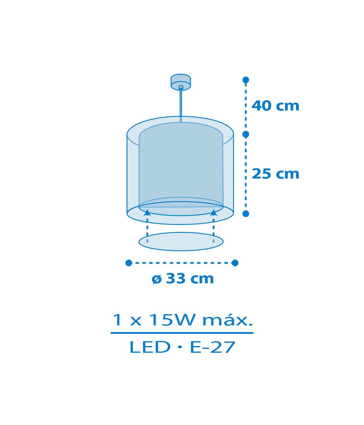 Lustre et Lampe suspension enfant Baby Teddy Bleu. Elle contient de l’encre fluorescente qui brille dans l’obscurité ; il suffit de l’allumer pendant 5 à 10 minutes pour la charger… Ensuite, éteignez-la et profitez de sa lueur magique ! Elle dispose également d’un diffuseur anti-éblouissement et d’une hauteur réglable, parfaite pour éclairer de manière sûre et confortable chambres et espaces de jeu. 100 % montée.