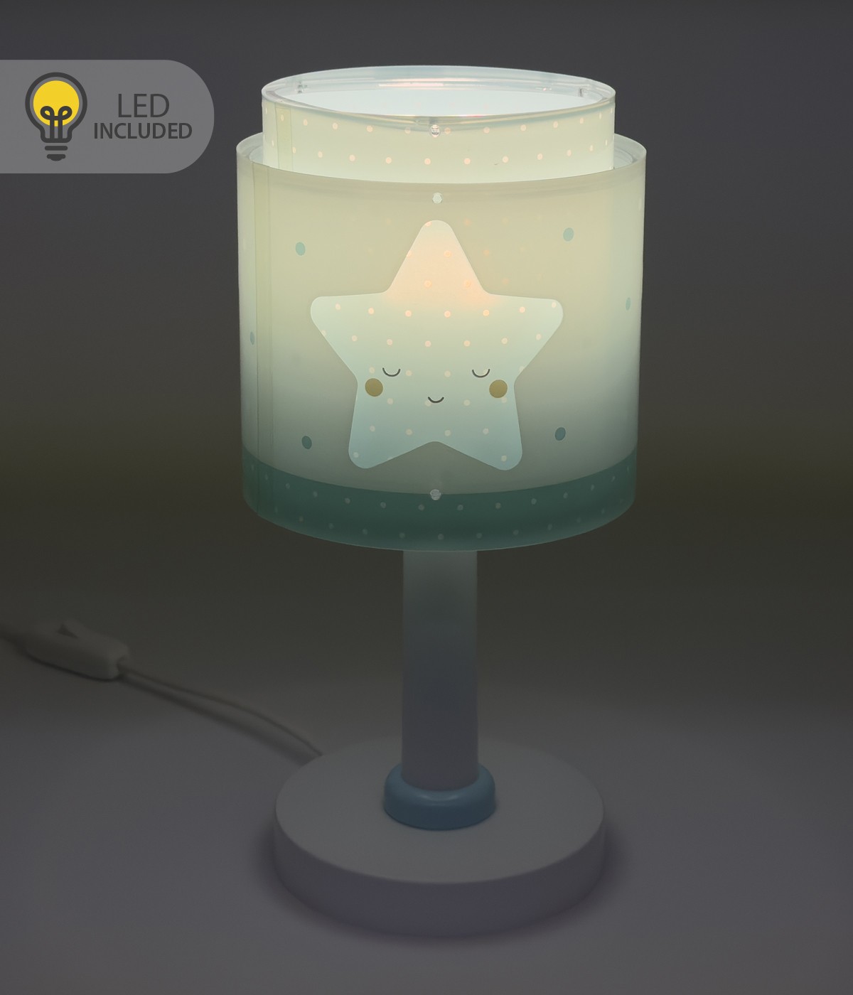 Questa lampada funziona anche come luce notturna grazie alla sua efficienza energetica, ed è dotata di una lampadina da 4W. Include anche un cavo con interruttore per maggiore comodità.