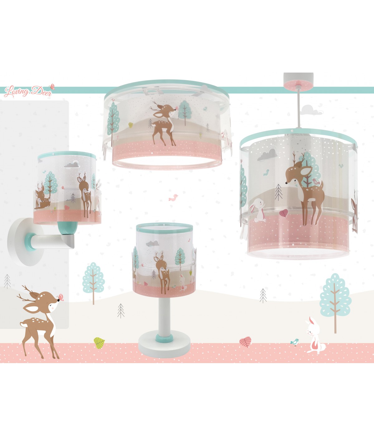 Plafoniera per bambini Loving Deer Cervo de colore rosa piccolo cervo che gioca nella foresta. 100% montata.