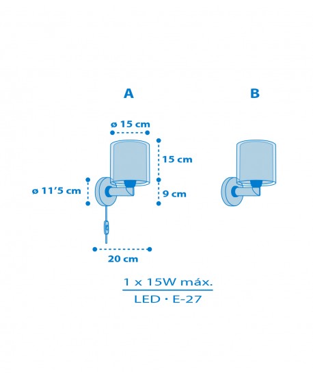 Kinkiet dziecięcy Baby Teddy Niebieski minut, aby się naładował… Następnie wyłącz go i ciesz się jego magicznym blaskiem! Można go zamontować bezpośrednio na ścianie lub za pomocą przewodu z włącznikiem, w zależności od potrzeb.