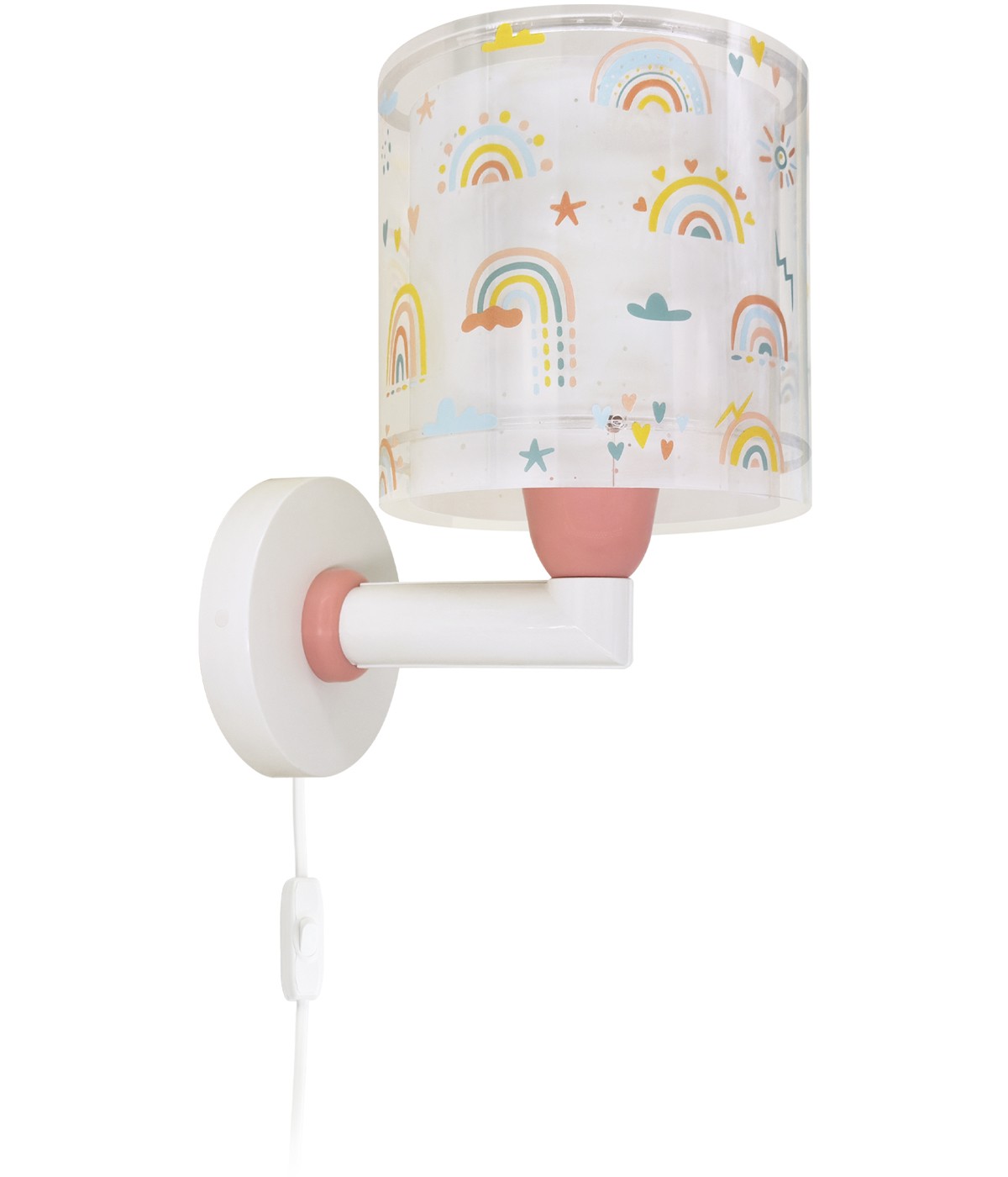 Kinkiet dziecięcy Rainbow. Można go zamontować bezpośrednio na ścianie lub za pomocą przewodu z włącznikiem, w zależności od potrzeb.