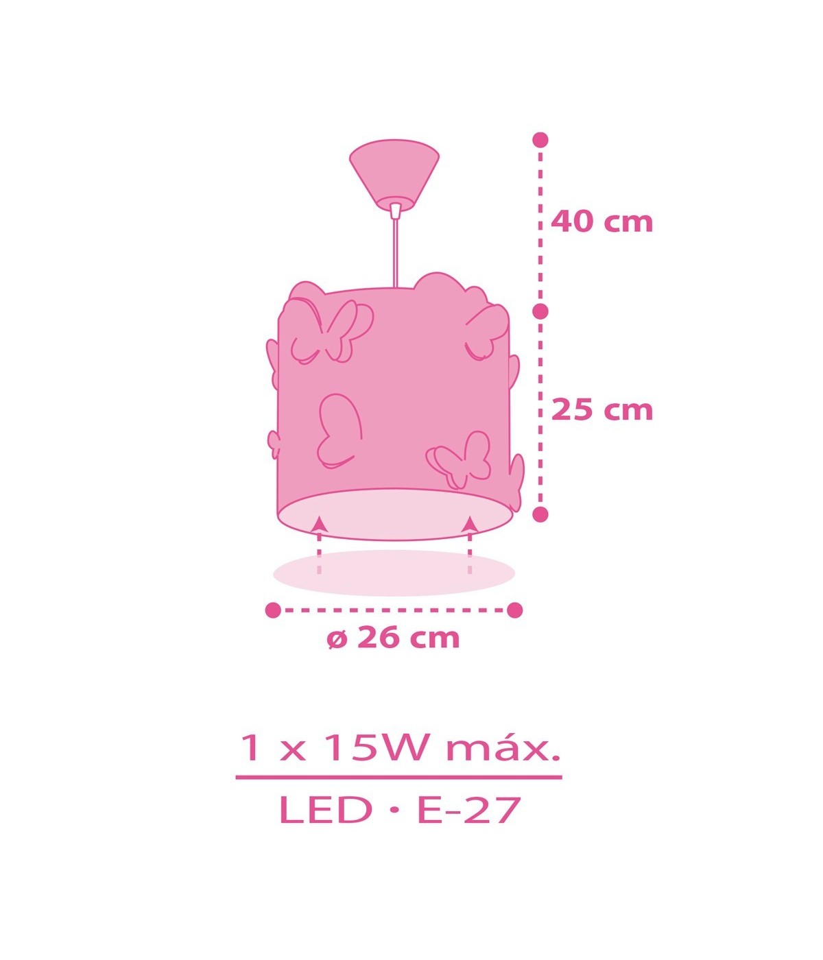 Dziecięca lampa sufitowa z motywem motyli Butterfly wypełni pokój dzieci kolorami: wykonana z przezroczystego polipropylenu, z przezroczystym kloszem i wycinanymi wzorami motyli, jest regulowana na wysokość, aby idealnie dopasować się do pokoju. Ta dziecięca lampa sufitowa posiada dolny zdejmowany dyfuzor światła, aby zapobiec oślepieniu.