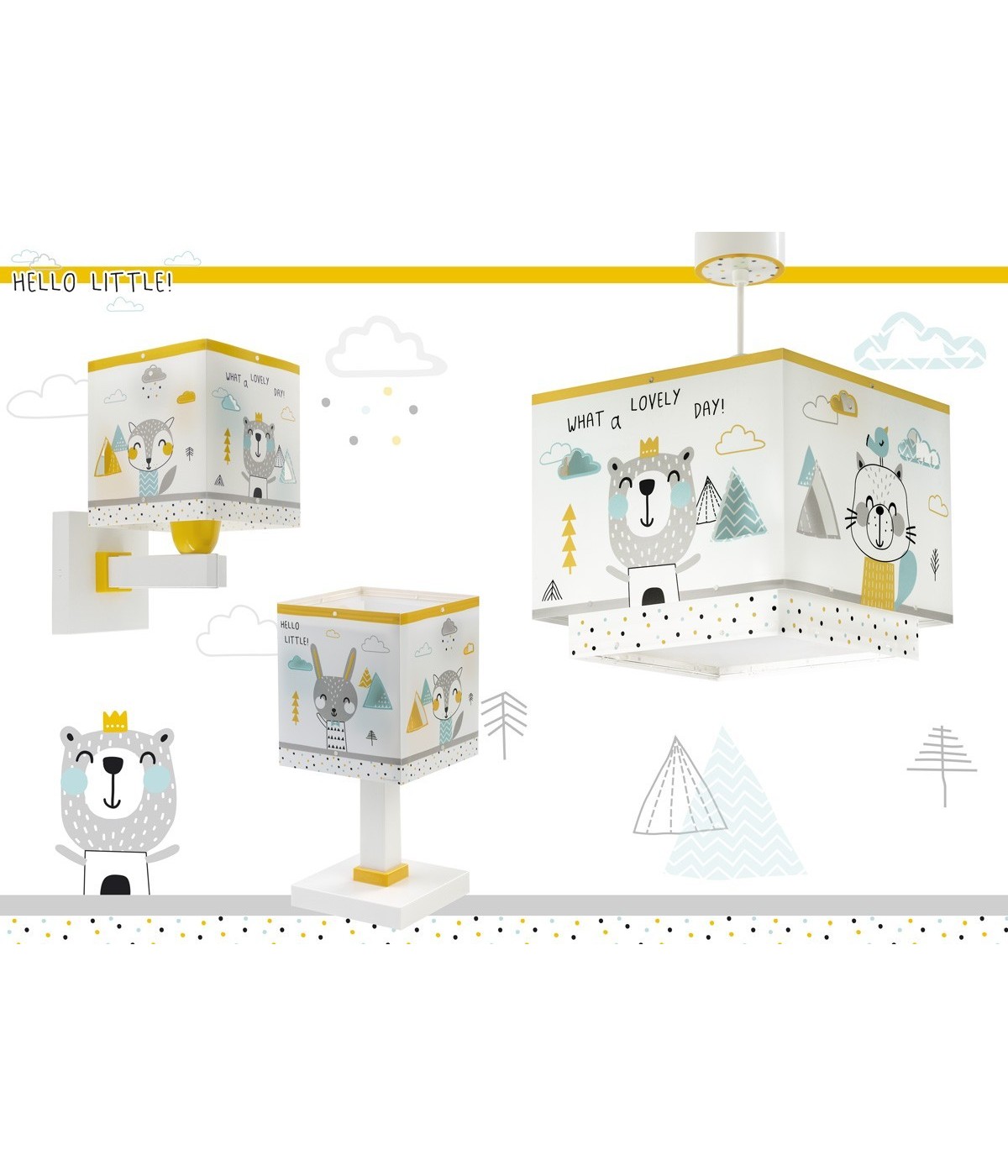 To jest żyrandol do pokoju dziecięcego z kolekcji Hello Little. Wesołe zwierzęta leśne tworzą jego oryginalny design dzięki podwójnemu kloszowi z przezroczystego polipropylenu, który generuje wyjątkowy efekt. Projekty zwierząt znajdują się na pierwszym kloszu, a w tle można zobaczyć wzór kolorowych kropek na wewnętrznym kloszu. Jest wykonany z polipropylenu, co zapewnia całkowicie bezpieczne użytkowanie przez dzieci. Lampa sufitowa dziecięca Hello Little jest regulowana na wysokość: dostosuj ją do wysokości sufitu w pokoju, aby wyglądała idealnie. Dodatkowo zawiera wyjmowany dolny dyfuzor światła, dzięki któremu unikniesz oślepienia i zapewnisz zawsze miękkie światło odpowiednie do codziennych potrzeb najmłodszych.