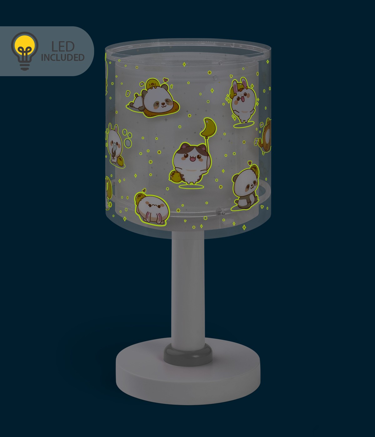 Candeeiro de mesa infantil Kawaii. Contém tinta fluorescente que brilha no escuro; basta ligá-la por 5–10 minutos para carregar… depois desligue e aproveite seu brilho mágico!