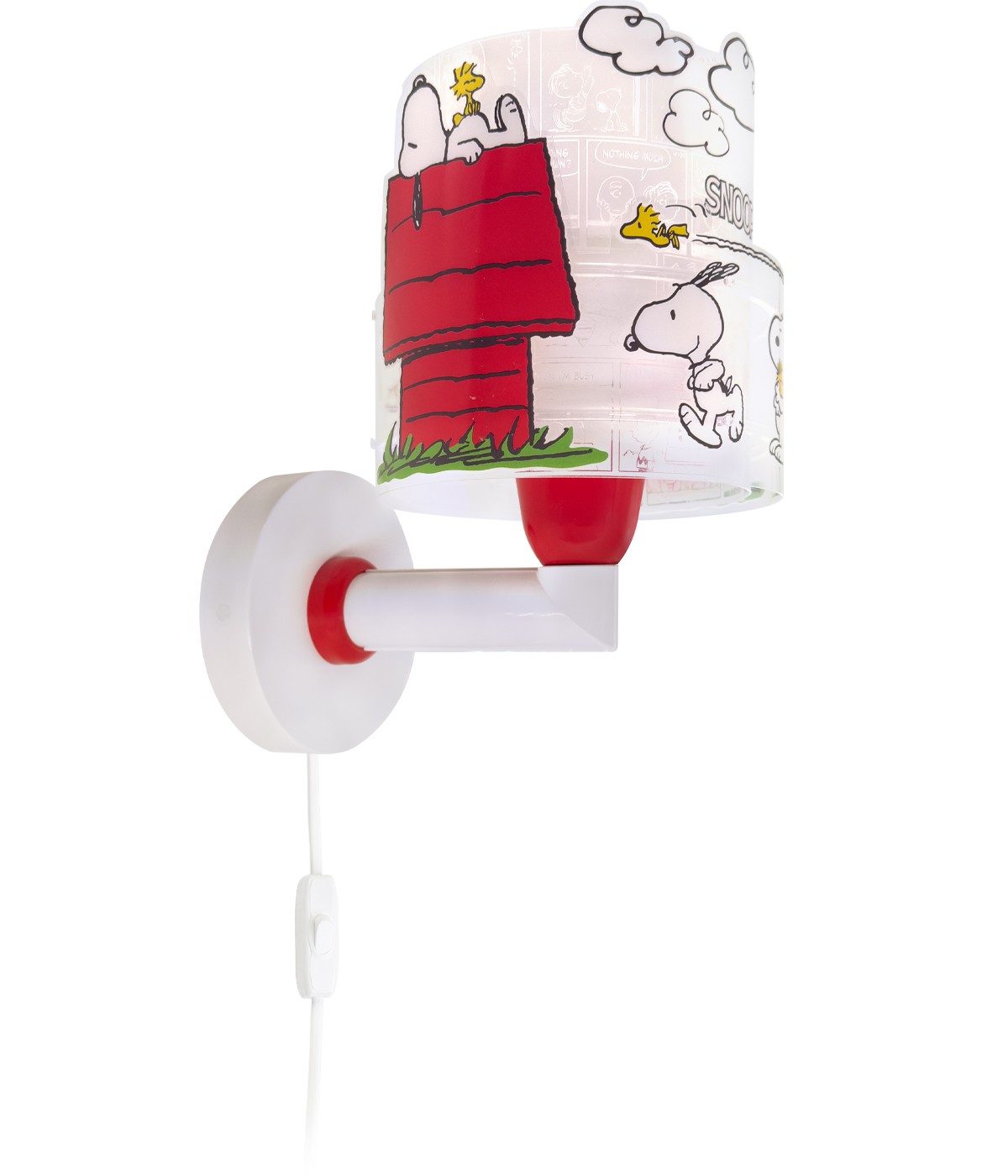Descobre a magia da nova coleção do Snoopy! Este candeeiro de parede, com o seu design encantador, traz um toque de ternura e cor a qualquer quarto infantil. Com a figura inconfundível do Snoopy, o candeeiro não só ilumina suavemente como também decora de forma única o espaço dos mais pequenos. Ideal para criar um ambiente acolhedor e cheio de fantasia com o Snoopy. Faz com que cada canto do quarto brilhe com a doçura do Snoopy!