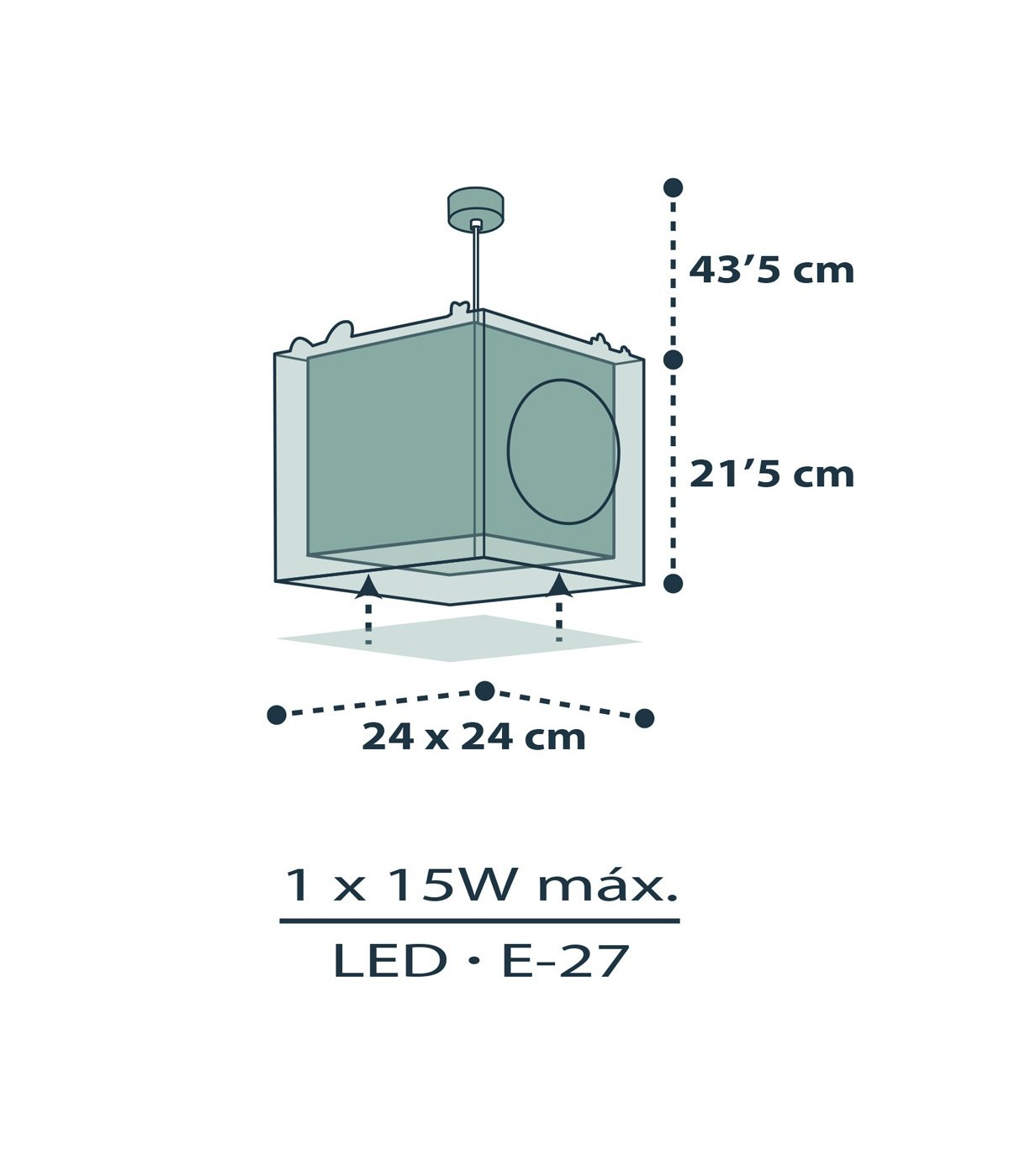 Lustre para quarto de bebé Baby Jungle, com abajur dupla transparente e regulável em altura na cor azul. Contém tinta fluorescente que brilha no escuro. Basta 5–10 minutos para carregar… Depois desligue e aproveite o seu brilho mágico! Dispõe de difusor anti-reflexo e altura regulável, perfeito para quartos e áreas de brincadeira. 100% montada.