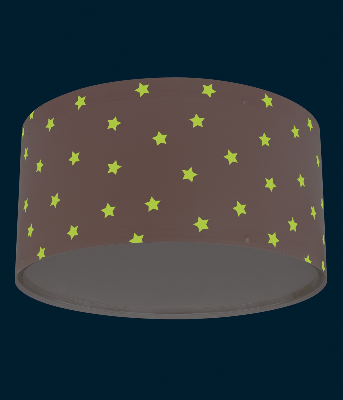 Plafon De Tecto infantil Star Light com estrelas rosa que brilham no escuro. Contém tinta fluorescente que brilha no escuro. Basta 5–10 minutos para carregar… Depois desligue e aproveite o seu brilho mágico! Inclui difusor anti-reflexo para uma iluminação suave e segura no quarto das crianças. 100% montada.